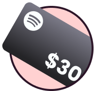 2nd Prize: $30 Spotify Gift Card. 3 persons.