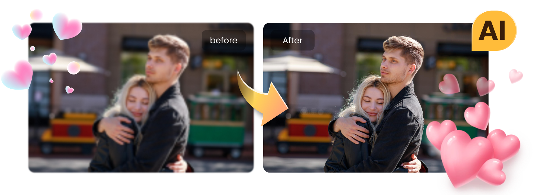 Enhance sweetheart photos, restoring vibrant quality and detail to every moment.